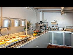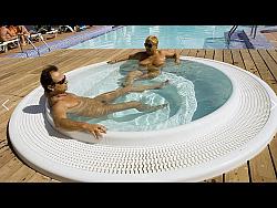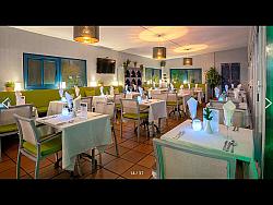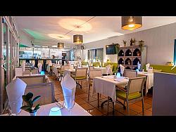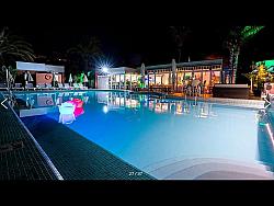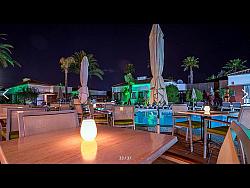 Az étterem harapnivalókat és ételeket kínál a hangulatos medenceteraszon.